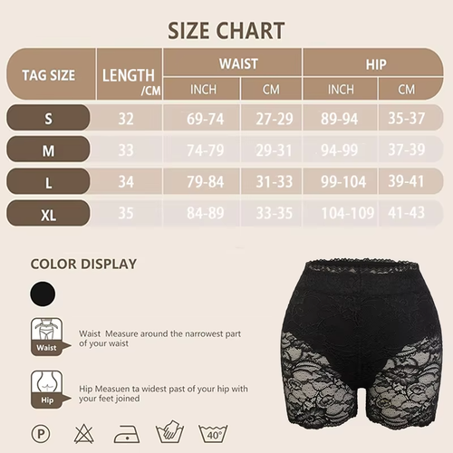 Dual-Layer Design: The innovative double-layer design features an inner layer of fabric and an outer layer of lace, offering tummy control and butt-lifting effects. Perfect for use as both safety shorts and regular underwear.