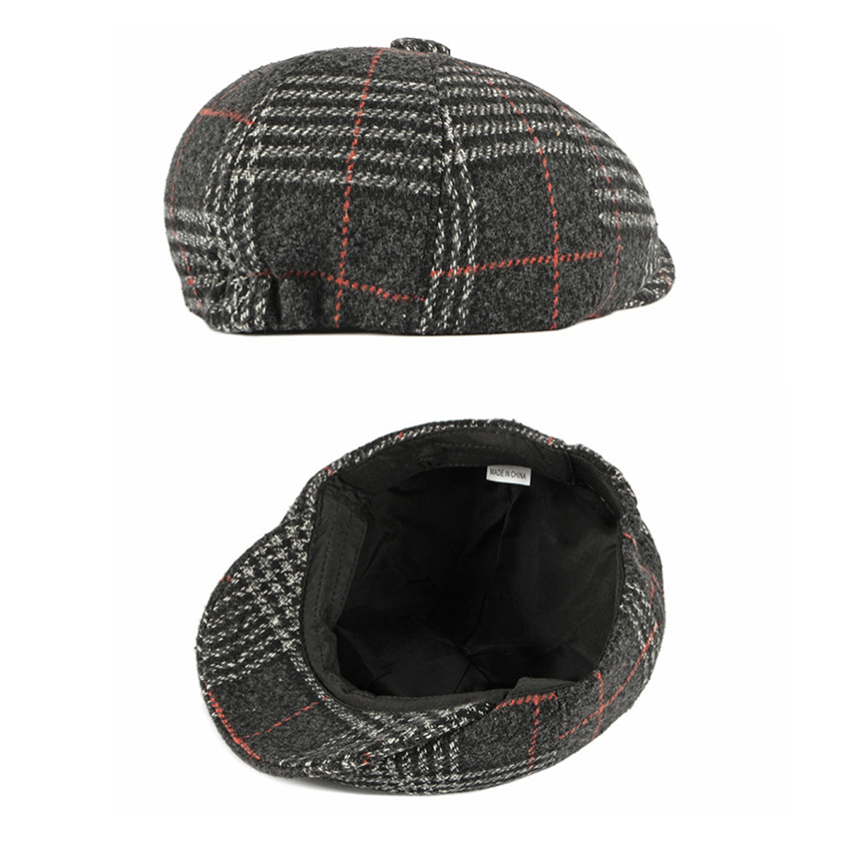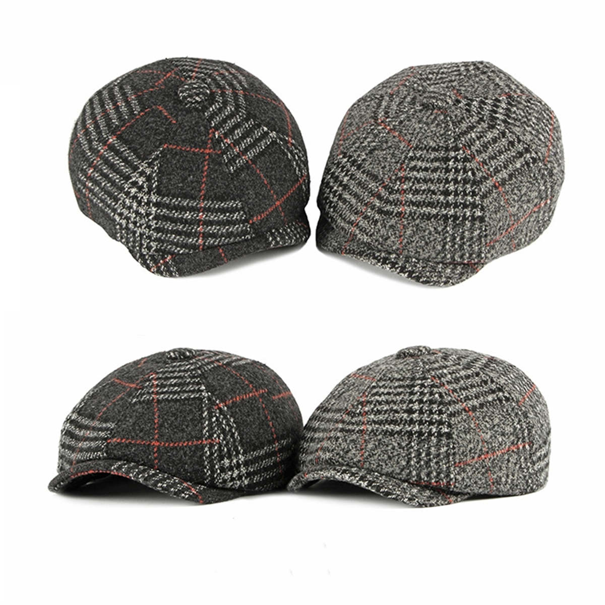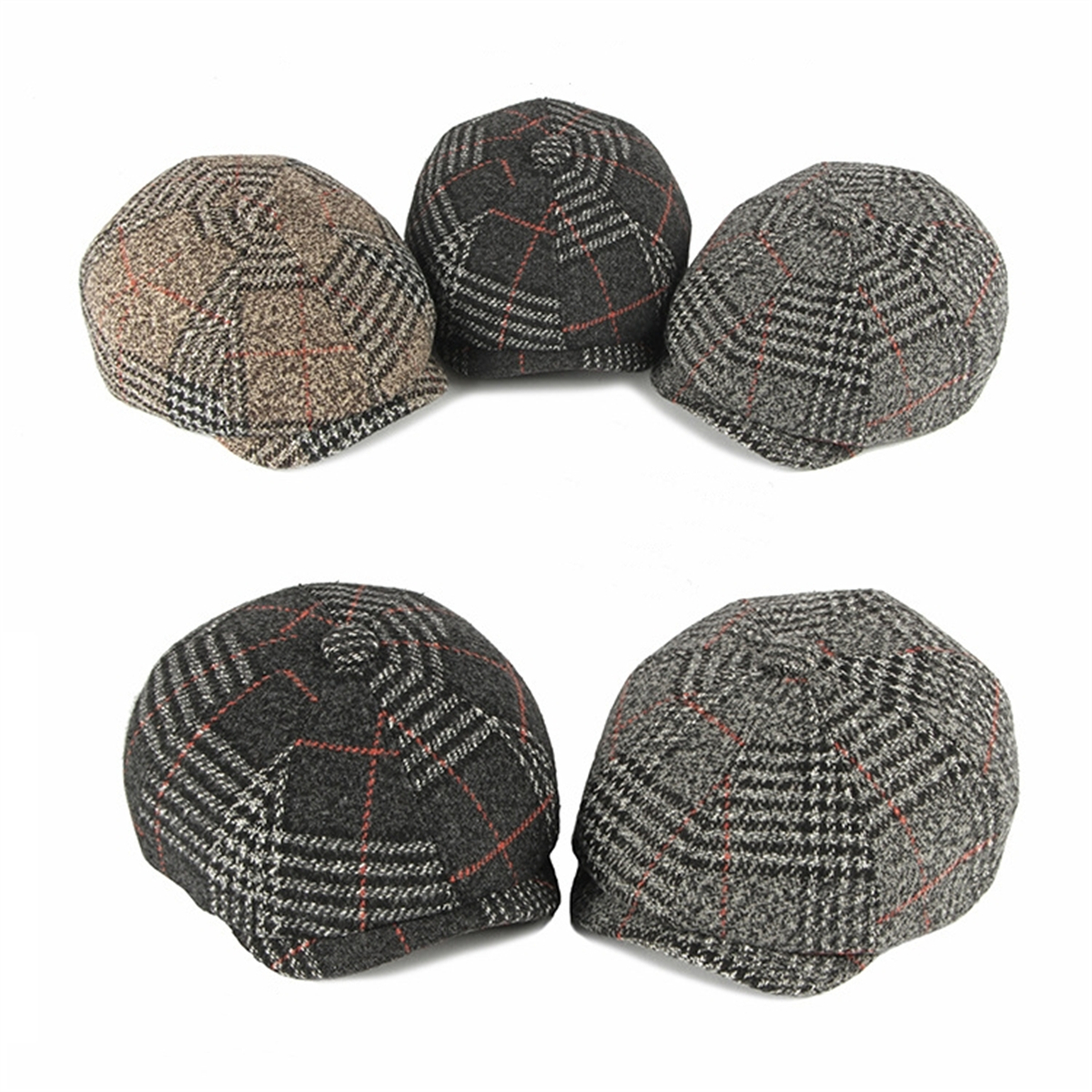 Autumn Winter Men Beret Hat Retro English Plaid Pattern Newsboy Cap