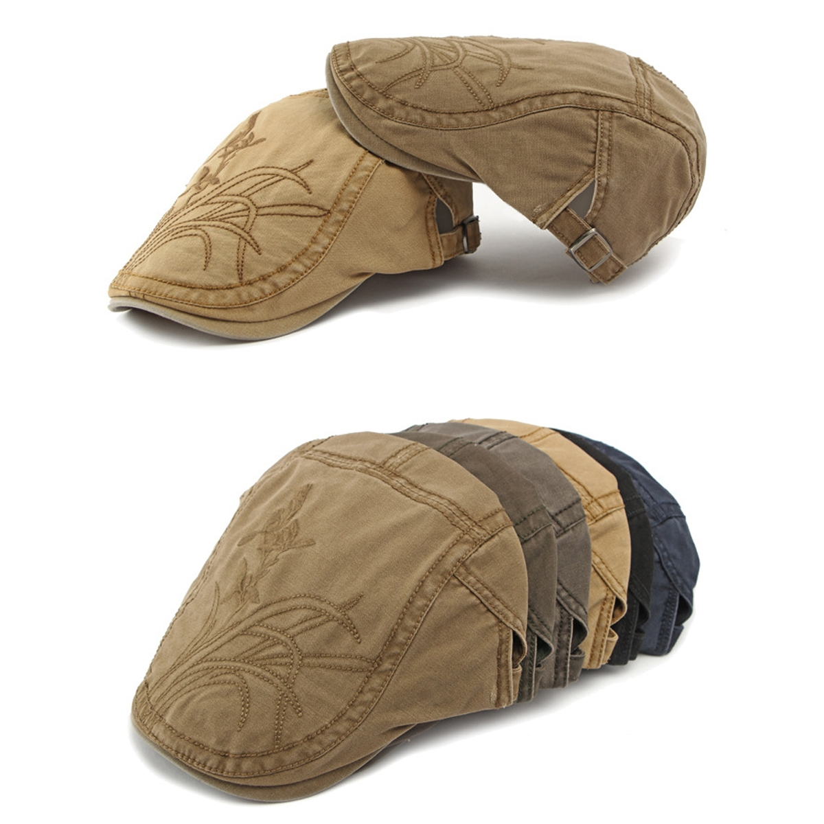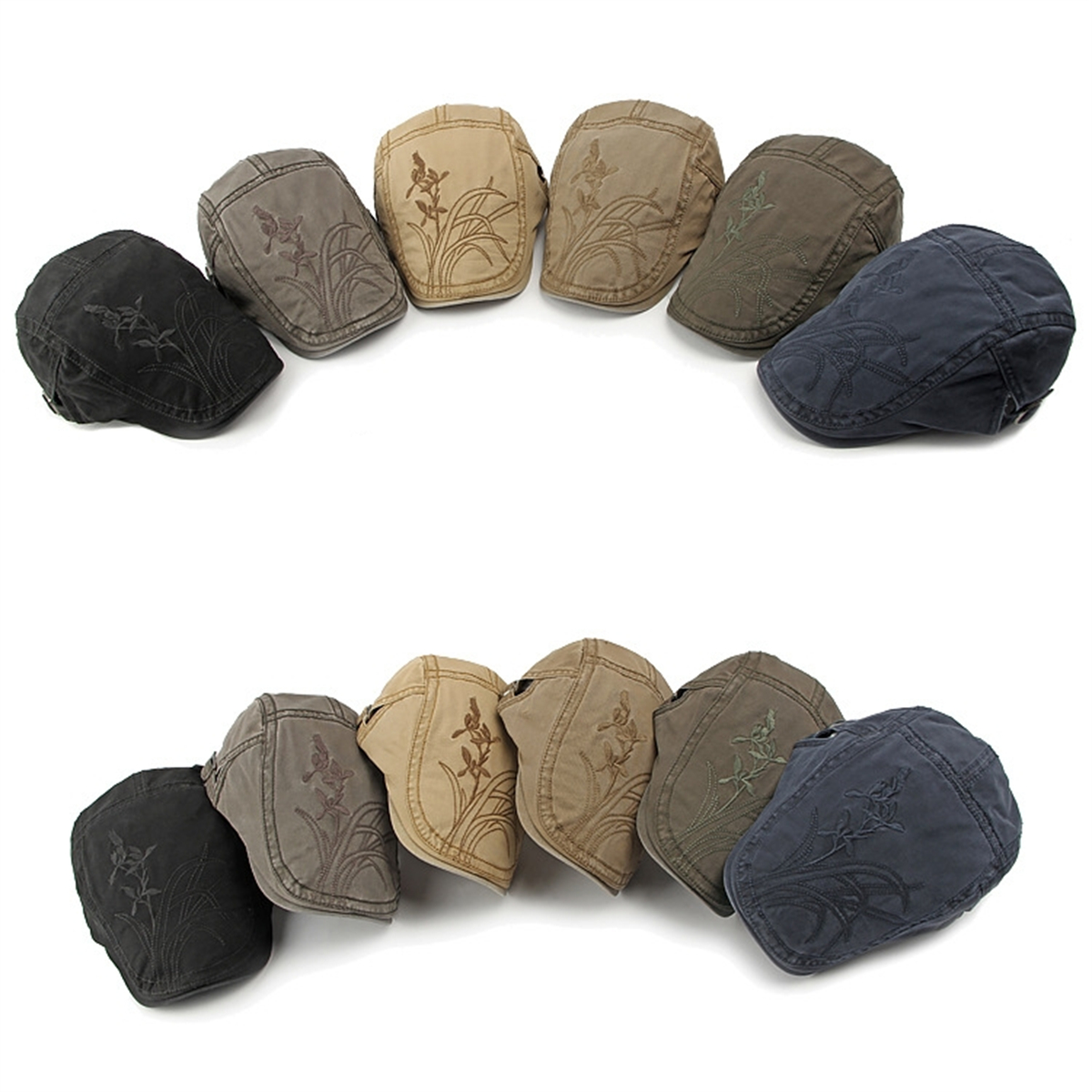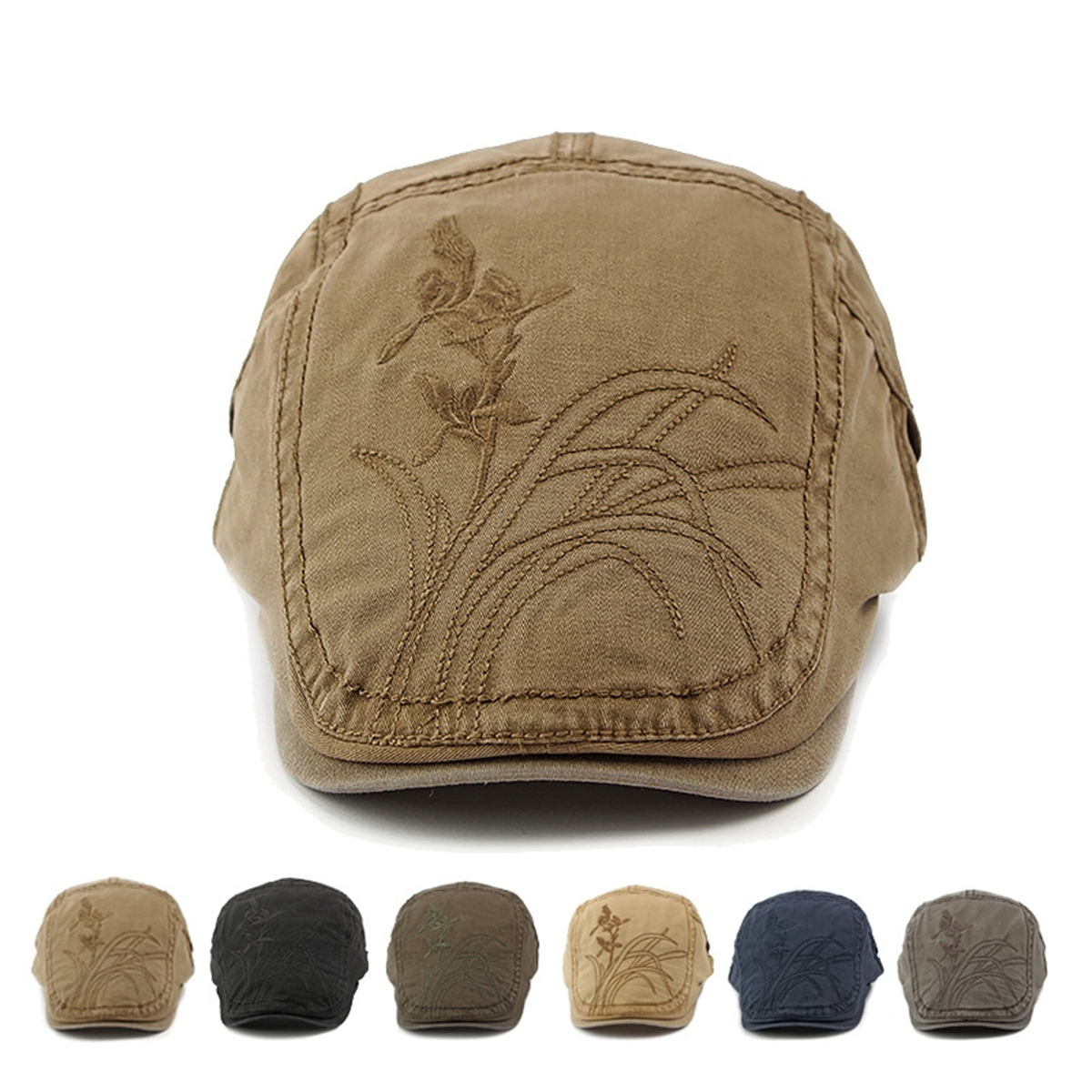 Adjustable Chinese Style Beret Cotton Orchid Embroidery British Retro Peaked Cap