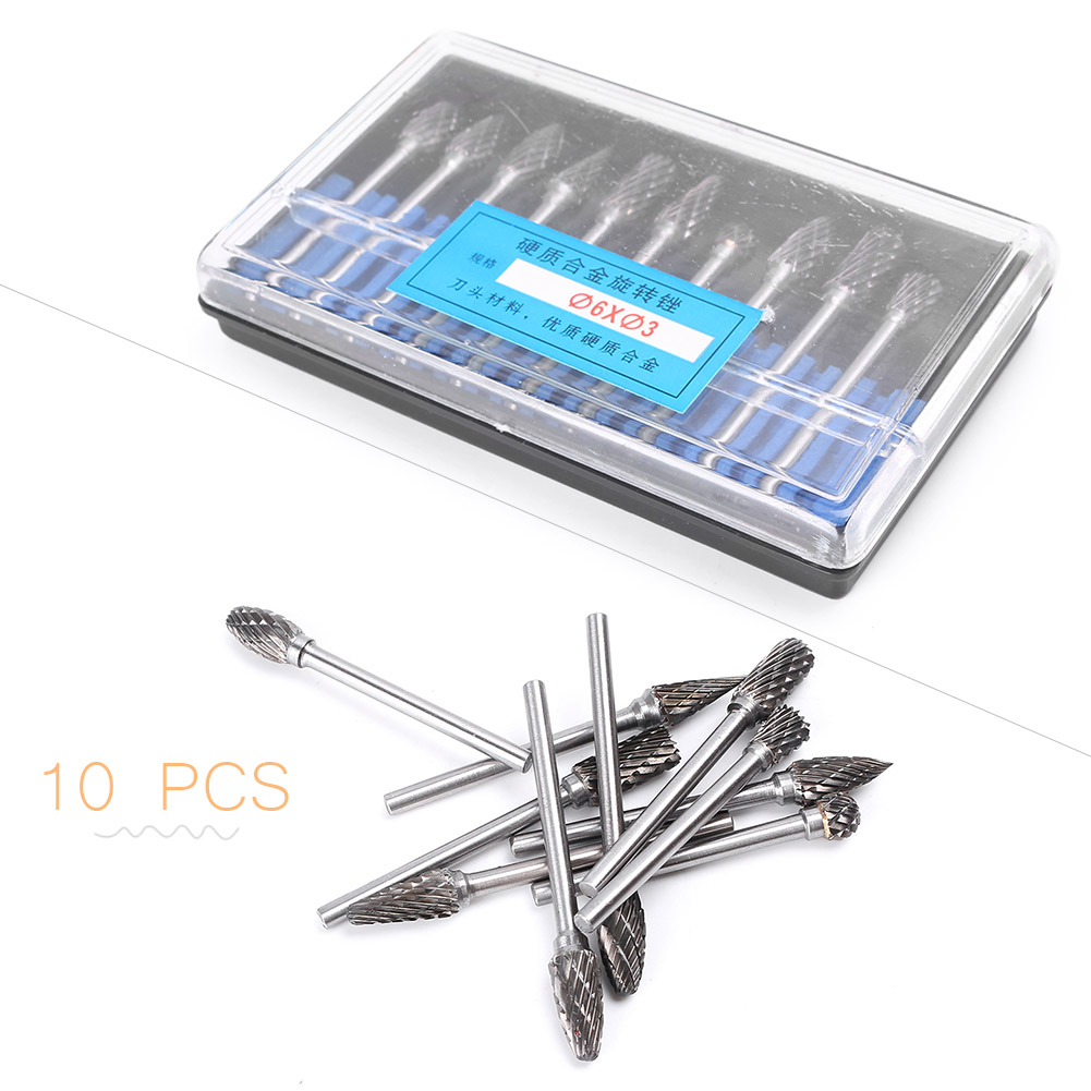 6mm Tungsten Head Carbide Burrs Rotary Drill Die Grinder Carving Bit Kit 10pcs