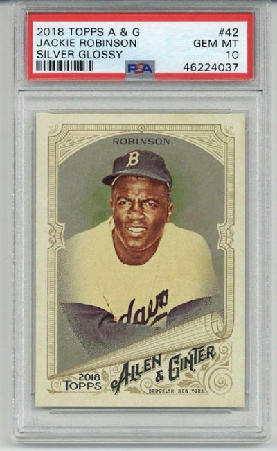 The item you are buying is a PSA GRADED and ENCAPSULATED 2018 Topps Allen & Ginter Silver Glossy #42 card of Jackie Robinson. The card was graded a 10 by PSA. This card comes from my personal collection. The plastic of the encapsulation has no cracks and is scratch free.