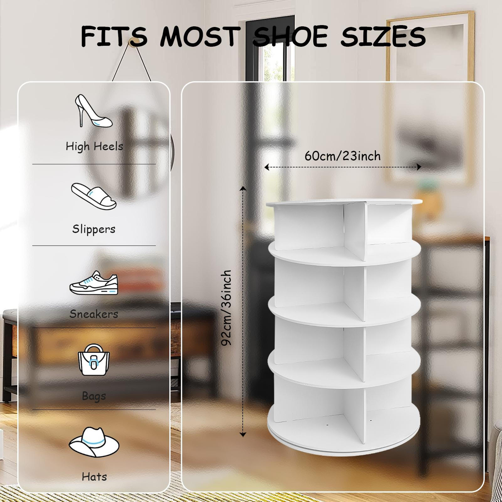 Maximize your storage space with our Rotating Shoe Tower! This sturdy, easy-to-assemble organizer is perfect for closets, entryways, bedrooms, garages, and more. Its stylish design and versatile uses make it a practical solution for keeping your footwear tidy and easily accessible.