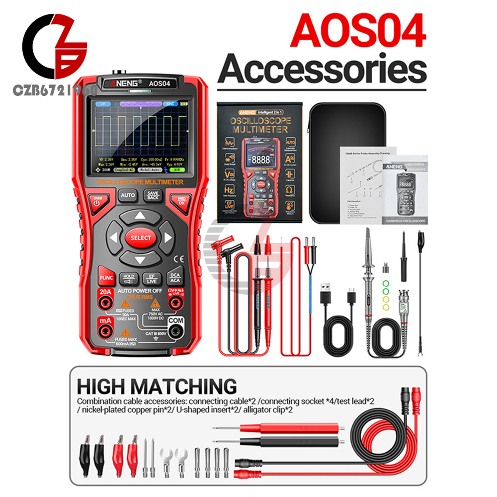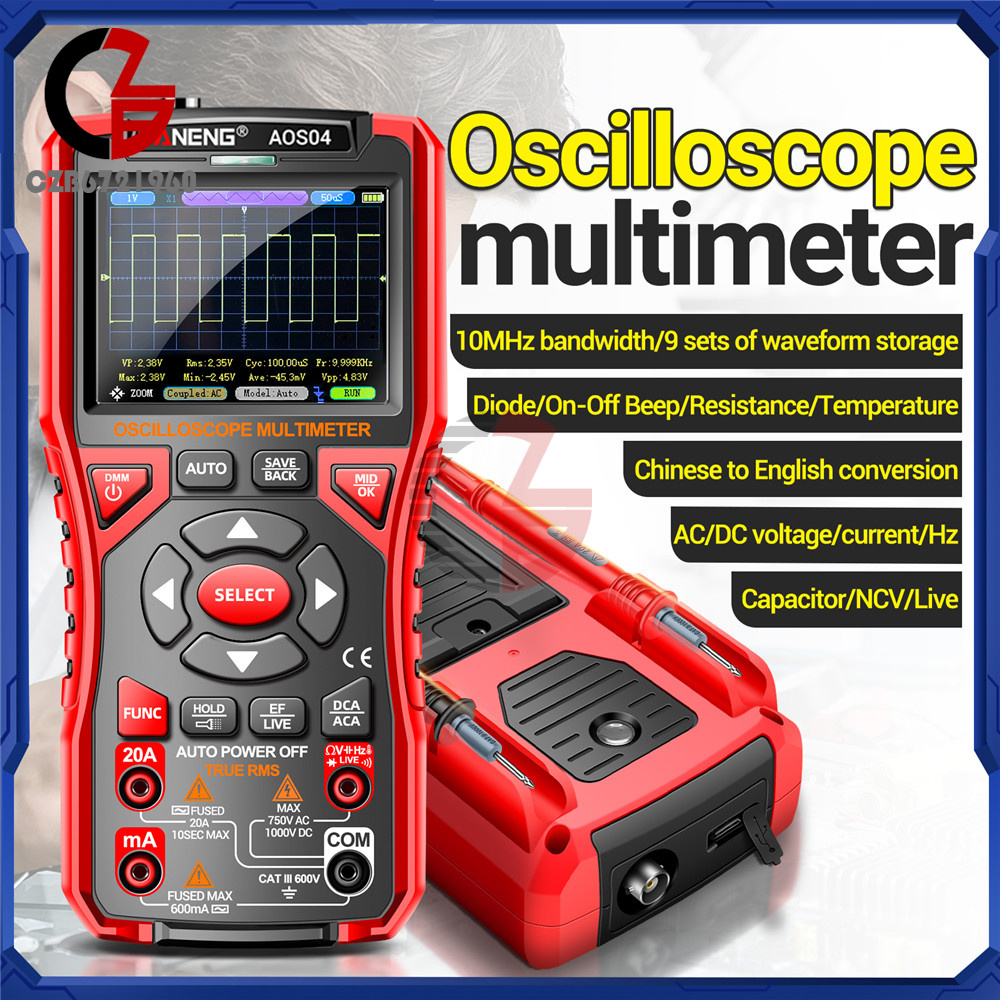 AOS04 2in1 Digital Oscilloscope + Multimeter 50MS/s 10Mhz Support Waveform AC/DC