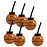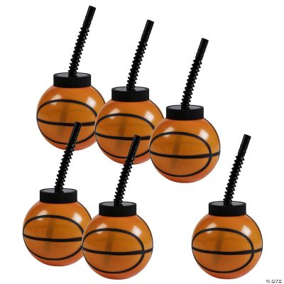 Score a slam dunk on party style with these basketball cups! The plastic cups feature a basketball-shaped cup with a black twist-top lid and black adjustable straw. Surprise basketball fans at a game watch party or delight partygoers for a birthday bash when you hand out these cups as party favors. The reusable cups are an exciting beverage holder with everyday usefulness.