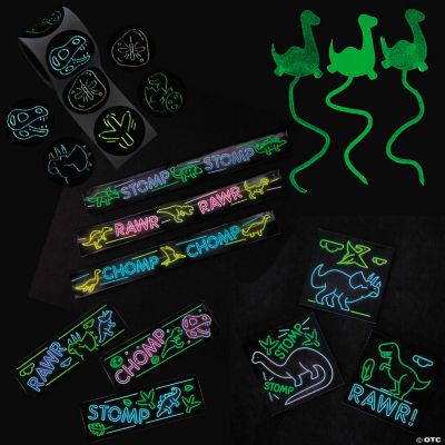 This bulk buy will enhance the glowing success of your celebratory event! This convenient assortment includes a variety of glow-in-the-dark neon items featuring a mix of dinosaur images. Kids of all ages will be thrilled to receive these neon picks as birthday party favors, giveaways at holiday events, candy alternative Halloween trick-or-treats, classroom rewards for star students, game prizes at carnivals and more. Expose items to direct daylight to activate glow.