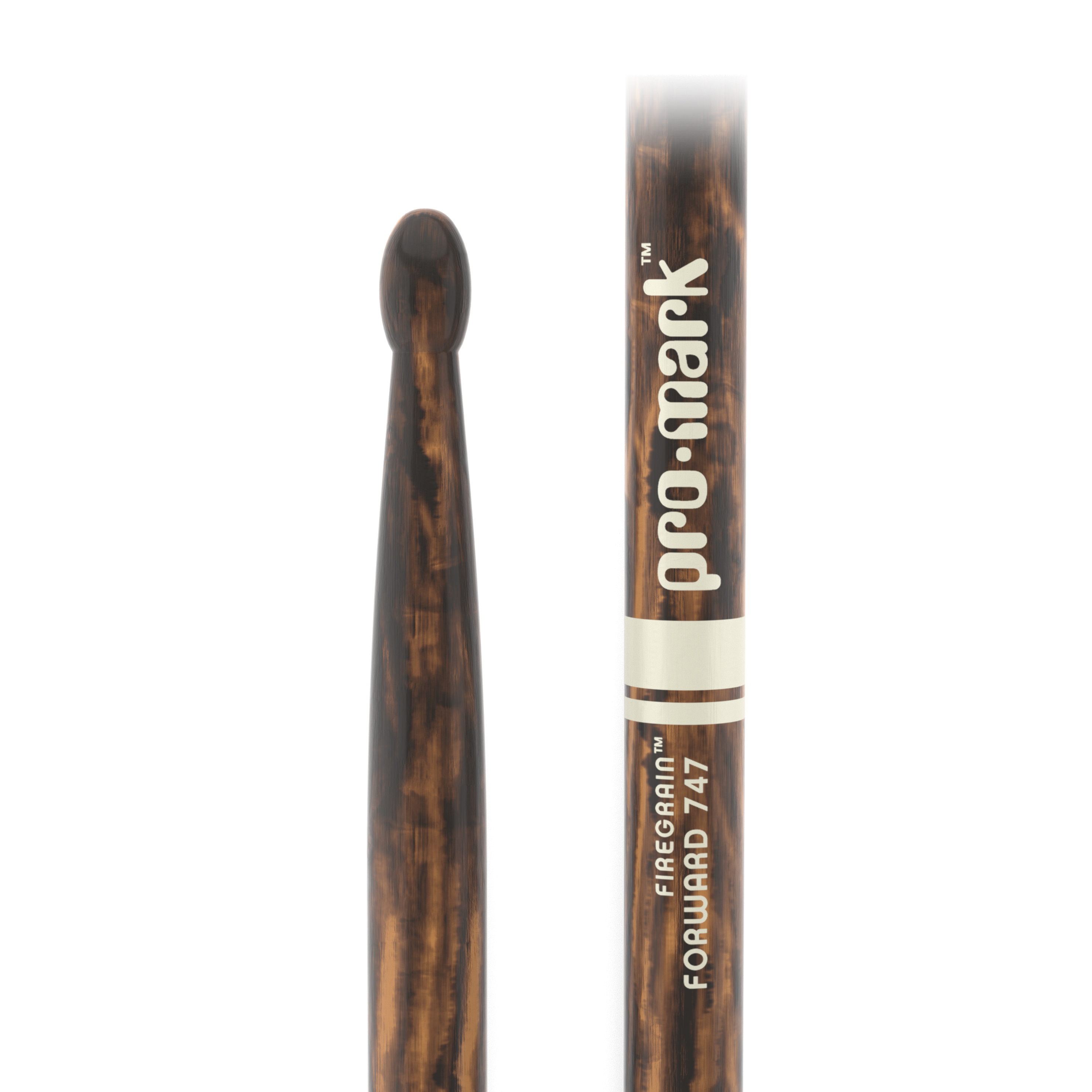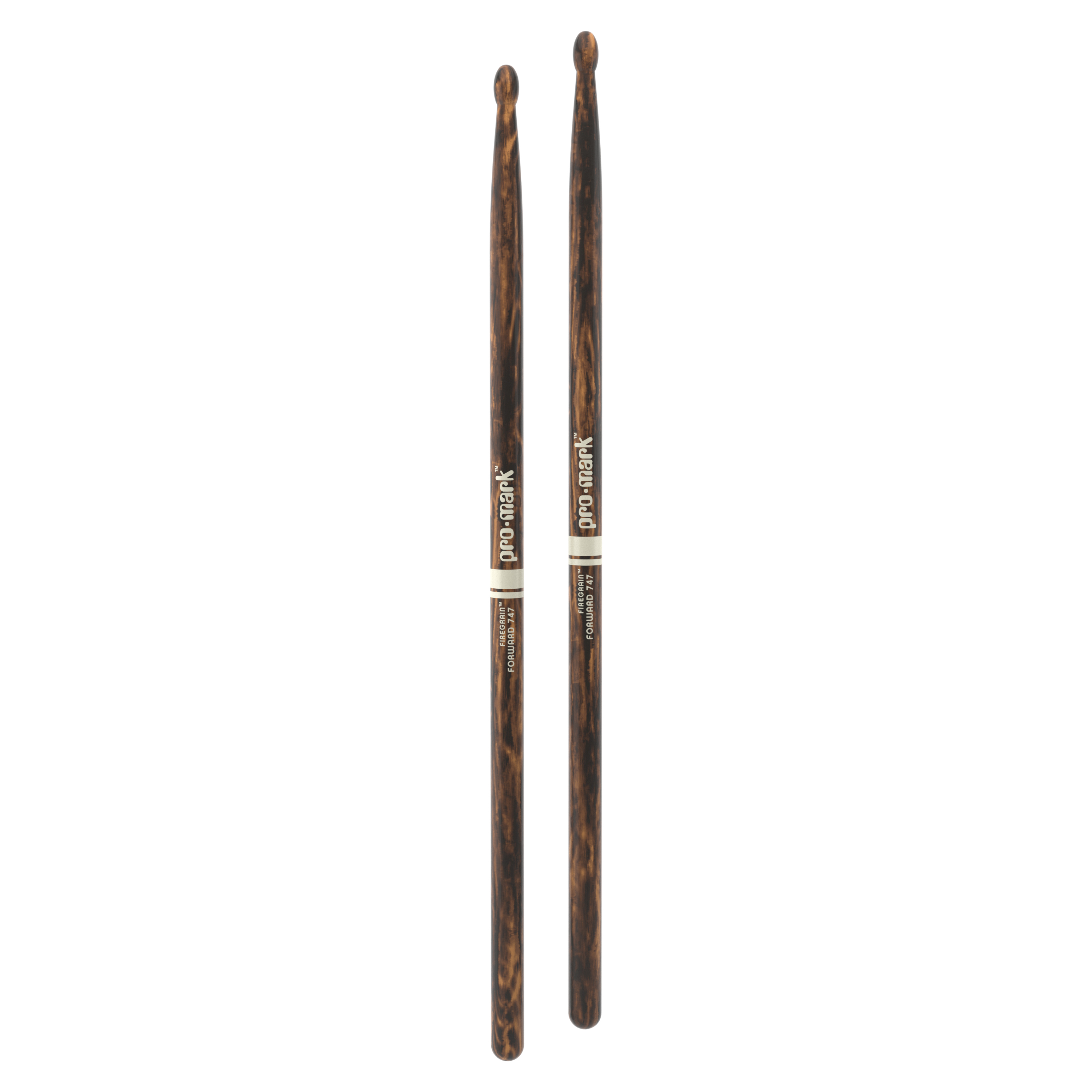 ProMark's most durable Forward 747. FireGrain is a patented heat-tempering process that transforms ordinary hickory drumsticks into precision tools with unprecedented durability. While keeping their original weight and balance, ProMark FireGrain sticks allow drummers to hit harder and play longer, naturally. No excess vibration, no space age gimmicks, just natural hickory hardened by flame. Diameter : .551" / 14mm / Length: 16 1/4" / 412.8mm. ProMark Classic Forward drumsticks feature a forward-weighted design for increased force into the playing surface. Available in various diameters, lengths, finishes, and wood types including FireGrain.