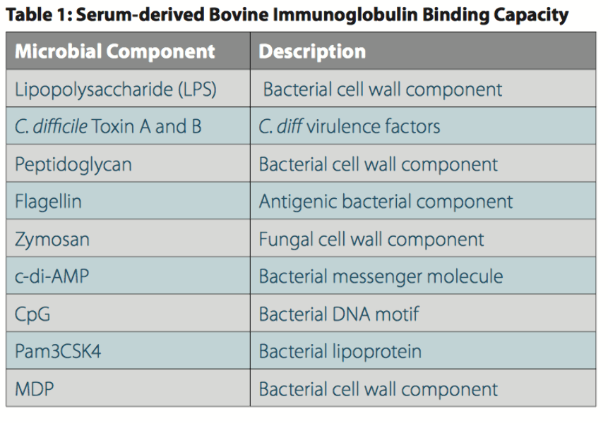 SBI has been shown to bind microbes and toxins, further enhancing microbiome balance and facilitating gut barrier strength. Broad-spectrum binding capabilities demonstrate the positive influence of non-allergenic forms of immunoglobulins. As seen in several studies, SBI has the potential to bind many types of microbes and toxins. This binding and elimination decreases microbe and toxin encounters by the immune system and resets immune tolerance.