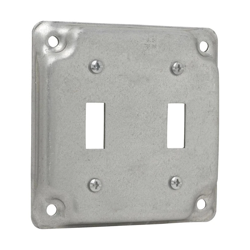 • Eaton Crouse-Hinds series TP508 Square Surface Cover, 4", Raised surface, Steel, For two toggle switches, 5.5 cubic inch capacity