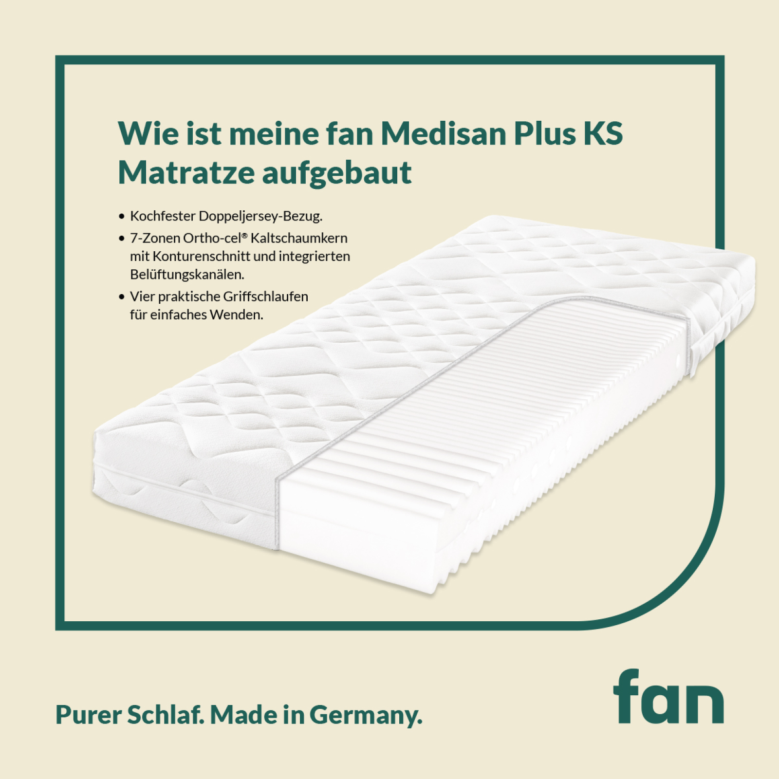 fan Medisan Plus KS - 7-Zonen-Ortho-cel-Kaltschaumkern-Matratze H3, 160 x 200 cm