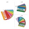 • 6 Sets Laminated Cardstock Addition Flash Cards on a Ring (Cards, 3" x 5"; ring, 2 1/4". Each set includes one hundred thirty-three laminated cardstock cards on a plastic ring.)br