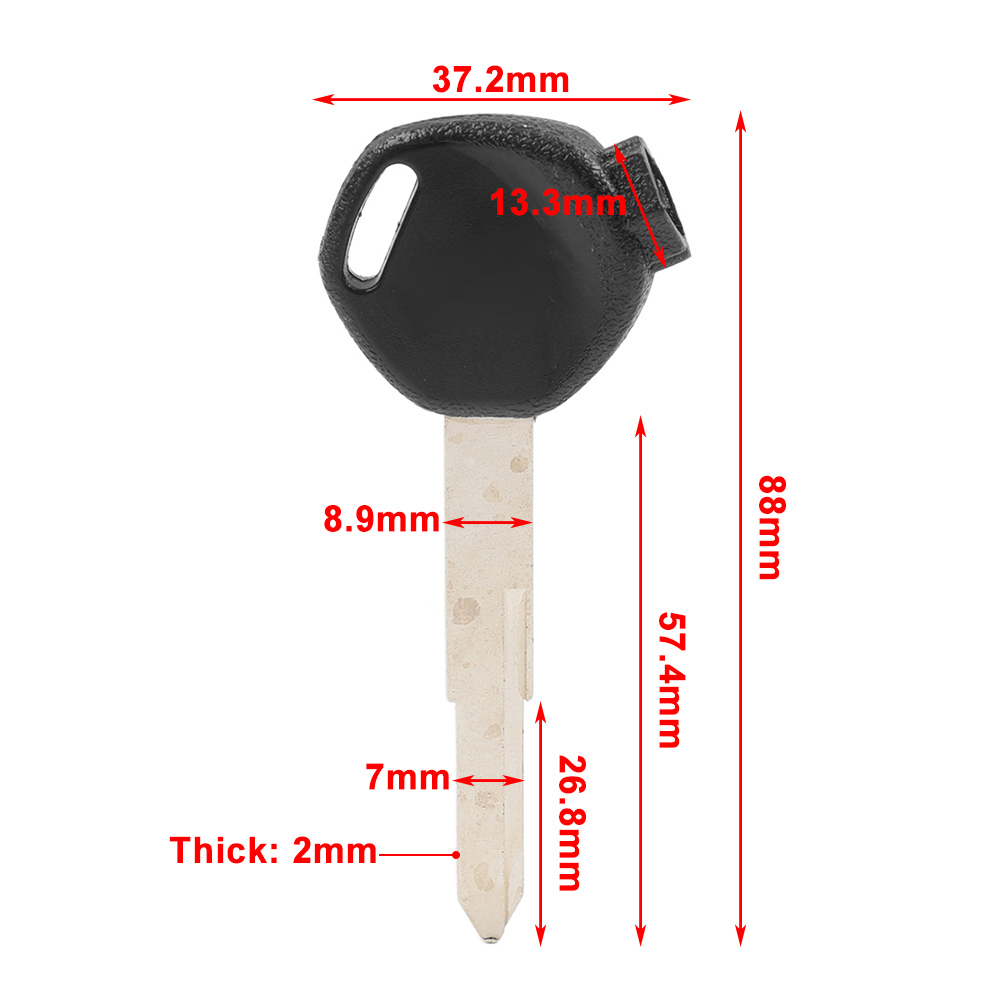 Uncut Blade Blank Key 1pcs Left Slot For 100 125 150cc DIO Z4 Z125 SCR100 WH110 Features: 1.Made of good material, long service life. 2.Its stylish design is perfect to decorate your motorbike. 3.Good Working Condition and Easy to Install. Specification: Condition: Aftermarket New Material: Plastic+Metal Color: Black Groove: Left Fitment: For 100 125 150cc Scooter DIO Z4 Z125 SCR100 WH110 The compatibility is for reference only, please check the size carefully. comparison of the number of grooves and the same direction in the slot Package Included: 1Pcs Uncut Blank Key Just a blank key, not with chip! Notes: 1.Due to the lighting and screen settings, the real color may slightly be different from the picture. 2.Please compare the details. 3.Please allow slight manual measurement deviation for the data.