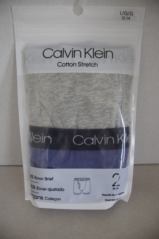 CALVIN KLEIN Boy's 2 Pack Cotton Stretch Boxer Briefs size L (12-14) .