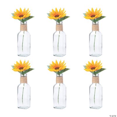 Whether you’re looking to add some bright colors to your home or event, this kit is a great choice! With enough supplies to create half a dozen rustic sunflower centerpieces, you can make each centerpiece to look exactly as you like. Great for pulling together wedding reception decorations or as a way to quickly pull together a bunch of gifts for friends, this kit is a fun way to do-it-yourself. (12 pcs. per unit) Includes: • 6 Polyester and plastic Sunflower Stems (6 1/2") • 6 Glass Rustic Glass Bud Vases (6") • Assortments are subject to change at any time and may vary from picture shown. Substituted items will be similar in nature.
