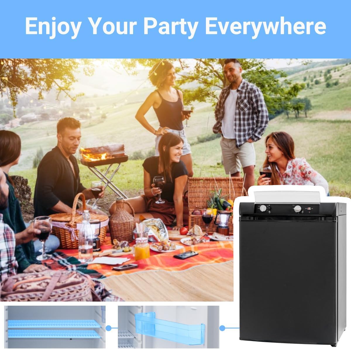 1.Please put it upright horizontally for 6 hours before plug it up. Slower cooling than compressor refrigerator, the propane refrigerator needs approximately 6~8 hours to get cold for the first time.