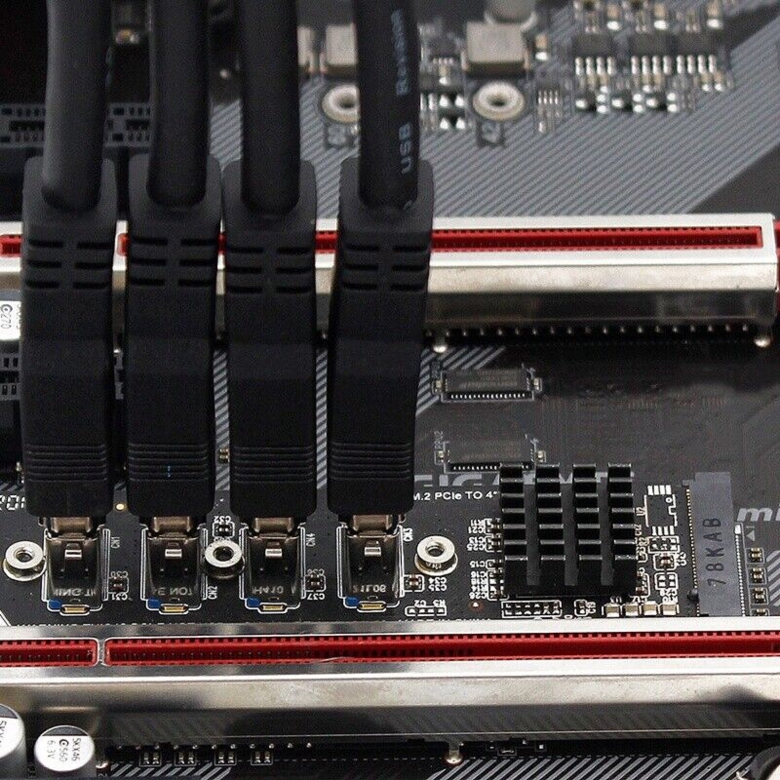 Features: 1. All 4 ports are PCI-E X1, USB. 2. The USB orientation is consistent, reducing the number of adapters and cables. 3. Effectively solve the problem of insufficient PCI-E interface, this product can expand 4 PCI-E. 4. Using 4-layer circuit board: It has very strong anti-interference ability, which effectively ensures the stability, data integrity and impedance matching of PCI-E high-speed signal transmission. 5. The bottom is reinforced to protect the product from deformation.