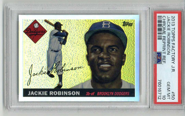 JACKIE ROBINSON 2013 TOPPS FACTORY JACKIE ROBINSON CHROME REPRINT REFRACTOR PSA 10 BASEBALL CARD