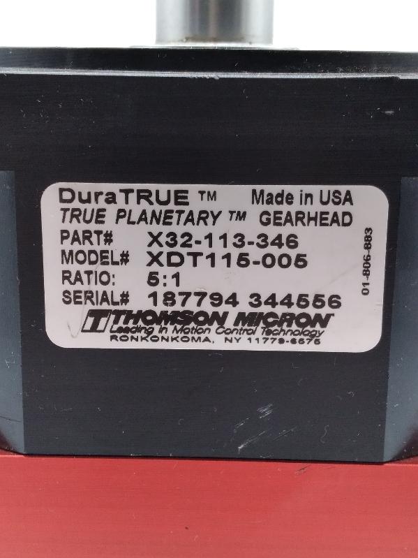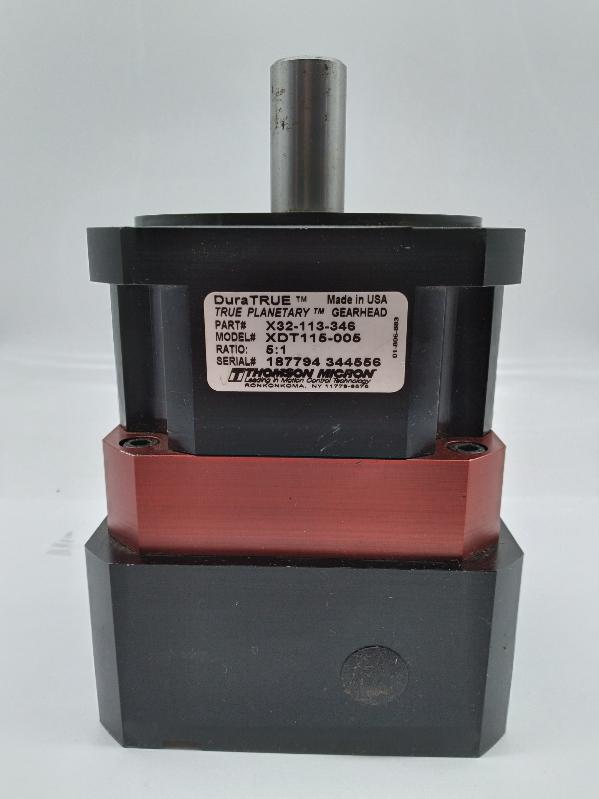 The Thomson Micron DuraTRUE™ X32-113-346 is a high-precision planetary gearhead engineered for demanding motion control applications. Featuring a 5:1 gear ratio, it offers a compact and efficient solution for torque transmission with minimal backlash.