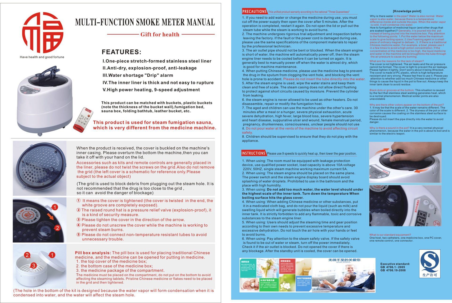 - Steam box inner layer, environmental protection waterproof material, health tasteless, heat seal treatment water leakage.