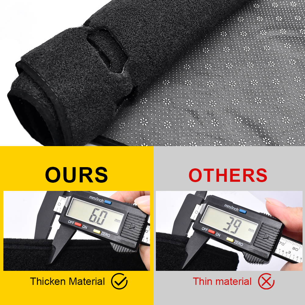 ☀【DURABLE MATERIAL】- This is a dash mat is Made of High quality polyester fabric, soft to the touch and well-made. And there are anti-slip silicone particles at the bottom of the mat, which will not slide on the dashboardf. The double-sided adhesive tape is presented as a gift, which can be fixed as needed to make the Dashboard Cover more difficult to slide.