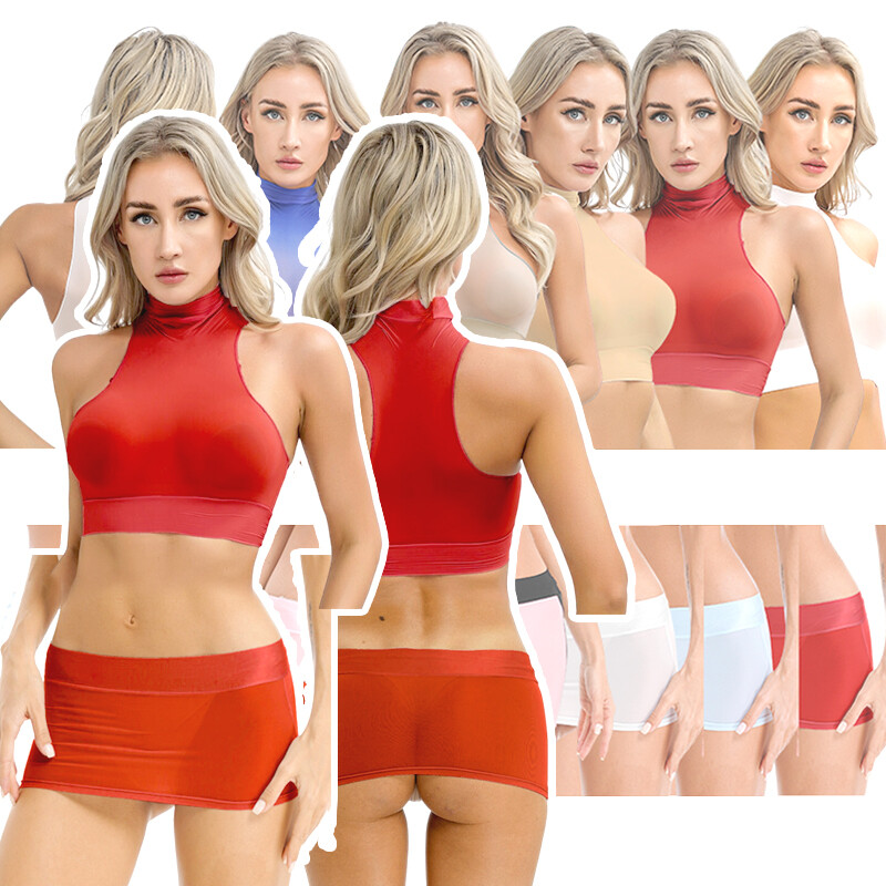 Women’s crop top is designed with mock neck, short sleeve, back zipper closure and slim fitting, which is must-have for disco party.