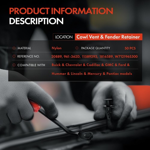 50x Clips Cowl Vent & Fender Retainer for Chevrolet Silverado 1500 8.5 mm Nylon