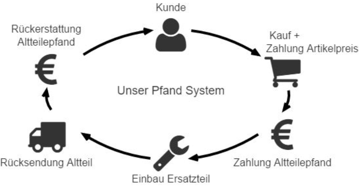 Die Bearbeitung der Bestellung erfolgt erst nach Begleichung der Kaution (Altteilpfand).