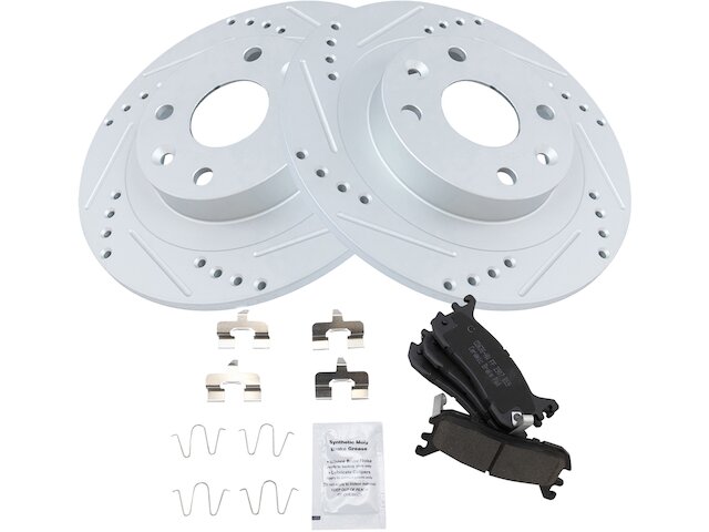 Package Contents: (1) Rear Ceramic Brake Pad Set; (1) Rear Premium G-Coated Performance Brake Rotor Set