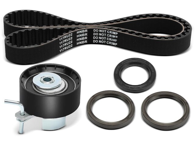 Package Contents: 1x Timing Belt, 1x Timing Belt Tensioner, 2x Camshaft Seal, 1x Crankshaft Seal