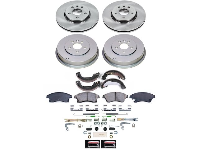 - This complete front and rear brake kit includes front non-coated replacement rotors with Z17 brake pads along with silver painted rear drums with brake shoes and hold down hardware.