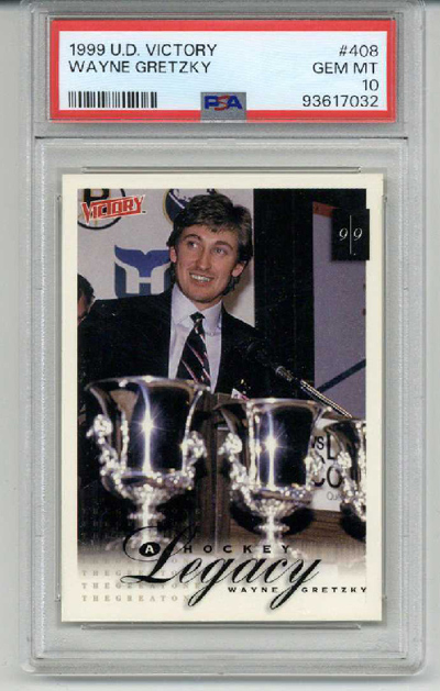 The item you are buying is a PSA GRADED and ENCAPSULATED 1999 Upper Deck Victory #408 card of Wayne Gretzky. The card was graded a 10 by PSA. This card comes from my personal collection. The plastic of the encapsulation has no cracks and is scratch free.