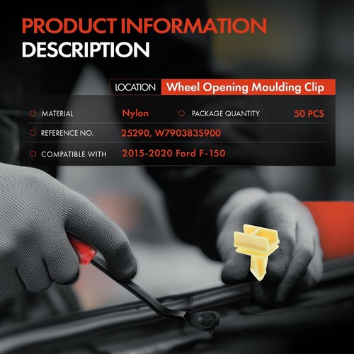 50Pcs Wheel Opening Molding Retainer Clips for Ford F-150 2015-2020 10 mm Nylon