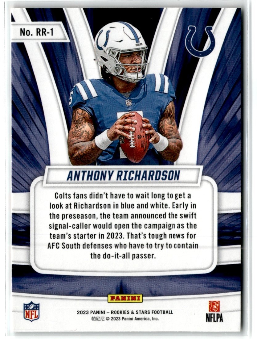 | 2023 PANINI ROOKIES & STARS ROOKIE RUSH ANTHONY RICHARDSON RC #RR-1 - | ||||||||||||||||||||