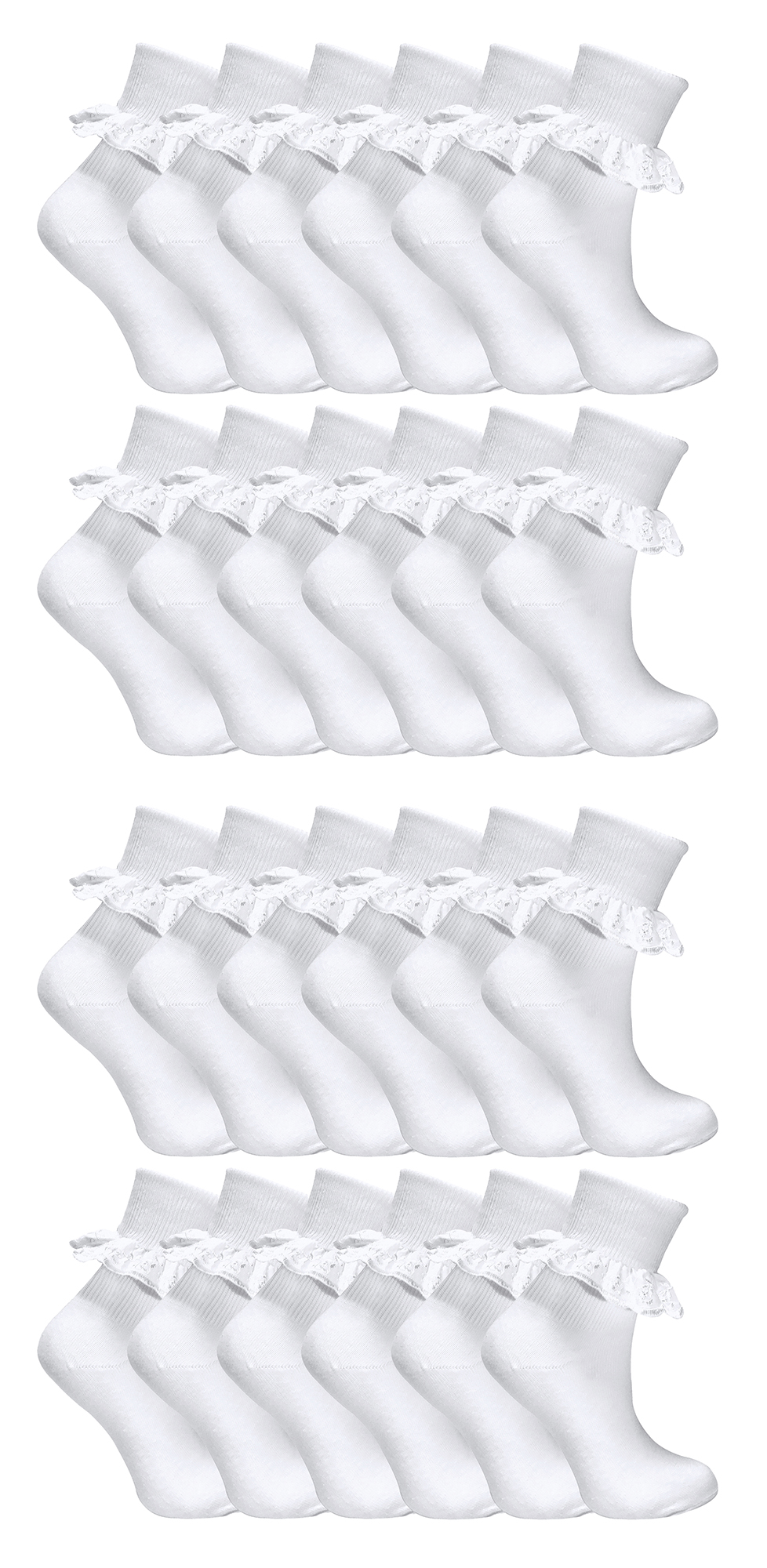 Sock Snob - 24 Pair Multipack White Frilly Lace Socks