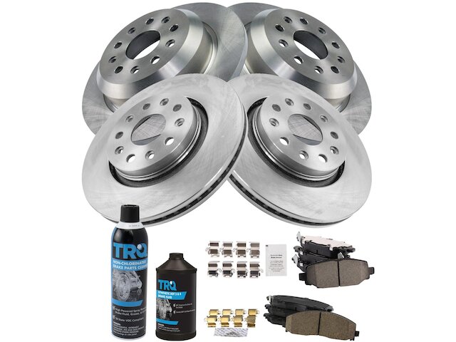 Package Contents: (2) Front Brake Rotors; (2) Rear Brake Rotors; (1) Front Ceramic Brake Pad Set; (1) Rear Ceramic Brake Pad Set; (1) Brake Cleaner & Fluid Kit