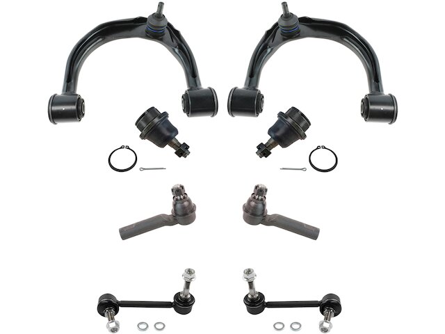 Package Contents: (2) Front Sway Bar Links; (2) Front Outer Tie Rods; (2) Front Lower Ball Joints; (2) Front Upper Control Arms with Ball Joints