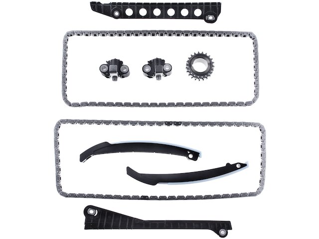 Package Contents: 2x Timing Chains (122 Links); 1x Crank Sprocket (double row 21 Teeth); 1x Tensioners (left); 1x Tensioners (right); 1x Guide rails (tensioner rail left); 1x Guide rails (tensioner rail right); 1x Guide rails (left); 1x Guide rails (right).