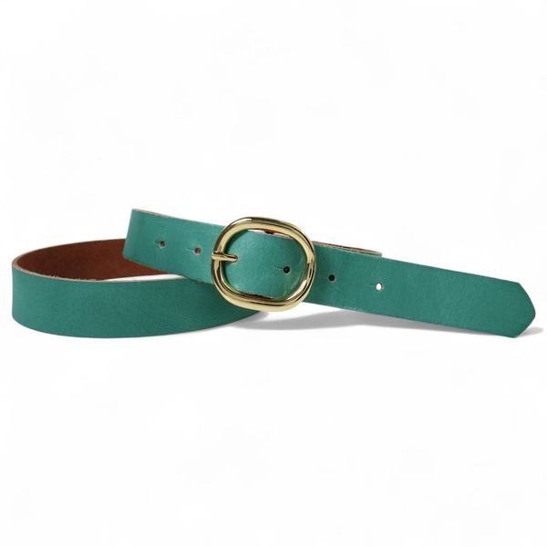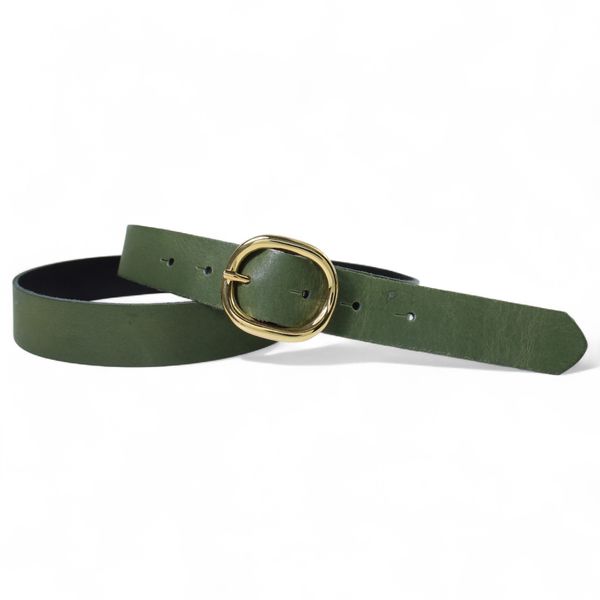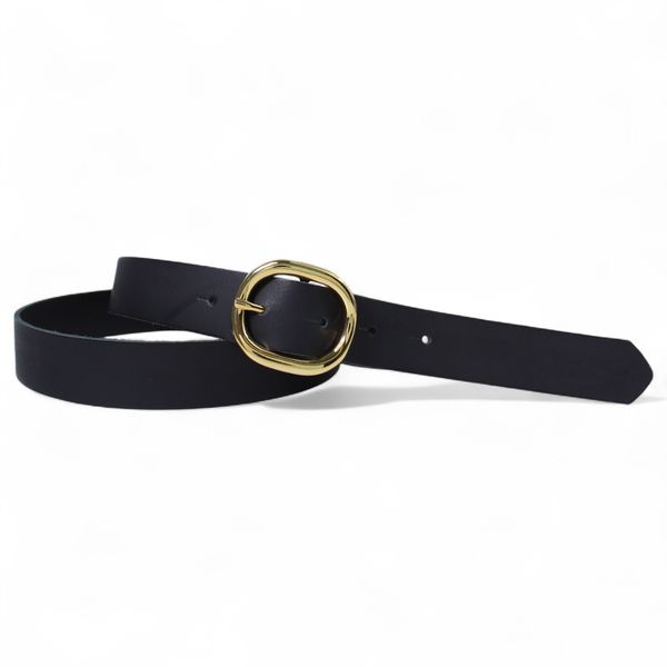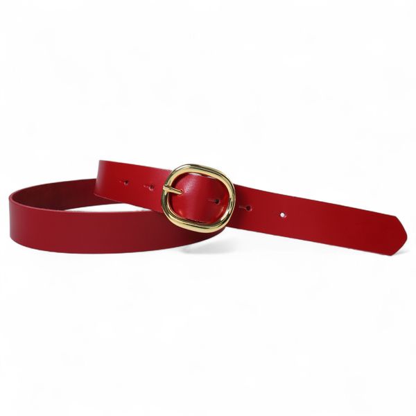 Damen Ledergürtel 2,8 cm mit goldener ovaler Gürtelschnalle, echt Ledergürtel