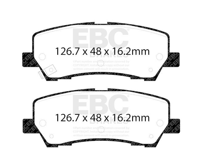 Notes: Redstuff Ceramic Low Dust Brake Pads -- FMSI Pad No. D1810; Vented; 330mm Dia.; 44mm Height; 25mm Thick; Pad Dimensions: 126.7 x 48 x 16.2mm; Fits 6th Generation~ With Performance Pkg.