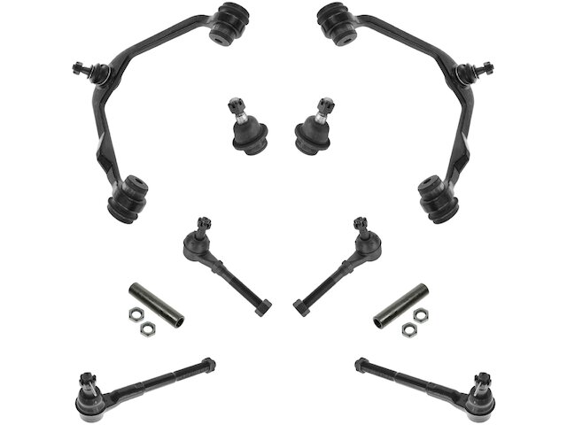 Package Contents: (2) Front Outer Tie Rods; (2) Front Inner Tie Rods; (2) Front Lower Ball Joints; (2) Front Upper Control Arms with Ball Joints; (2) Front Tie Rod Adjusting Sleeves