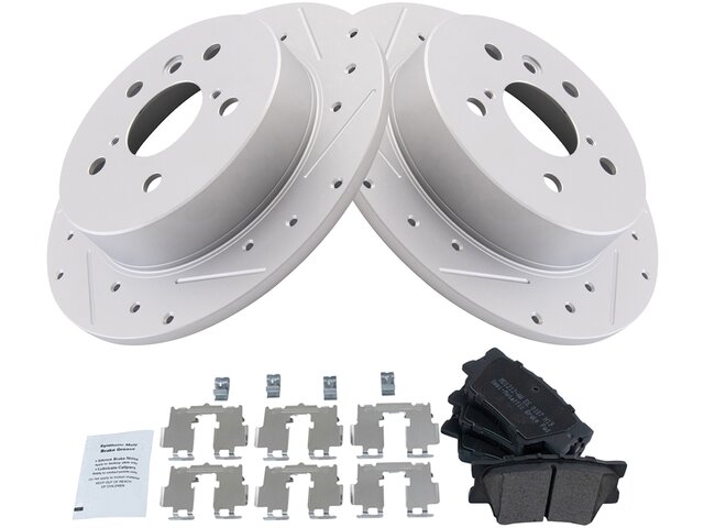 Package Contents: (1) Rear Semi-Metallic Brake Pad Set; (1) Rear Premium G-Coated Brake Rotor Set