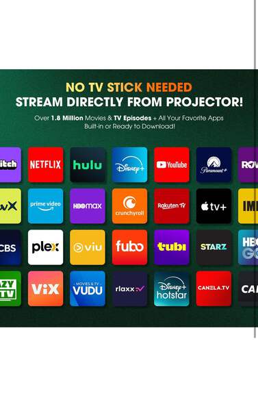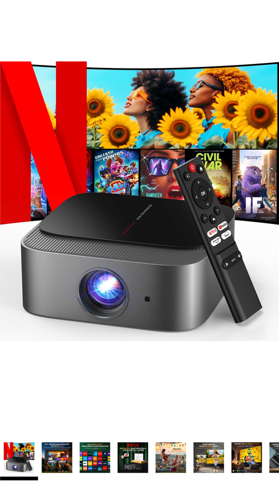 2025 Netflix Smart Projector | 386+ Built-in Apps: DBPOWER E2 is a Netflix Officially Licensed smart mini projector designed for seamless streaming. Instantly explore 1.8M+ movies & TV episodes with 386+ native apps, including Netflix, Prime Video, Hulu, Disney+, Max, Peacock, Vudu, Paramount+, and more—no extra devices needed! Access a vast entertainment collection from YouTube, Tubi, and Pluto TV. Unlike some browser-based Netflix projector, E2 movie projector’s built-in native apps offer smoother playback, online updates (OTA), and an immersive cinematic experience. The remote features 4 quick-access hotkeys (Netflix/Prime Video/ YouTube/Disney+), jump into your favorite content instantly