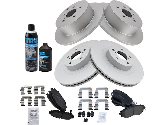 Package Contents: (1) Front Ceramic Brake Pad Set; (1) Rear Ceramic Brake Pad Set; (1) Brake Cleaner & Fluid Kit; (2) Front Premium G-Coated Brake Rotors; (2) Rear Premium G-Coated Brake Rotors