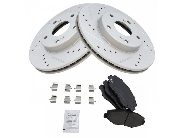 Package Contents: (2) Front Performance Brake Rotors; (1) Front Ceramic Brake Pad Set; Brake Pad Contact Point Grease; Brake Pad Hardware