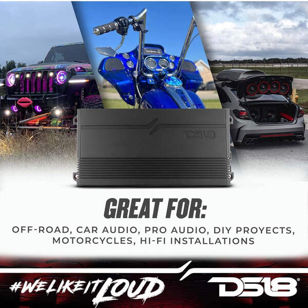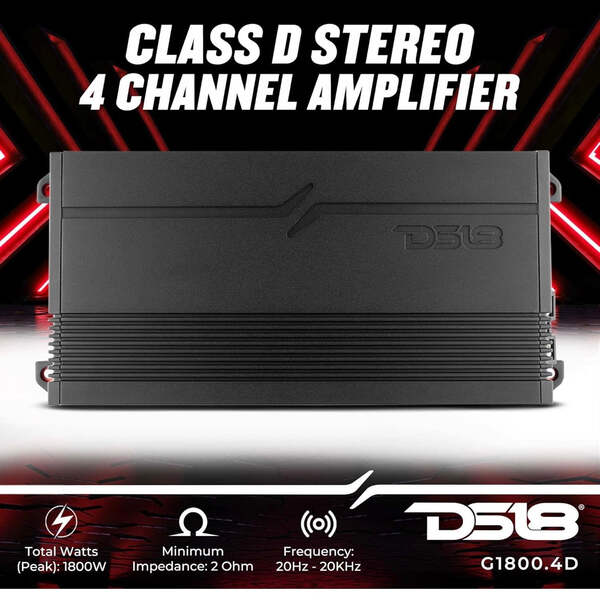 DS18 G1800.4D Car Audio Amplifier 4 Channel Class D Full Range 1800 Watts - Compact Design Easy Installation - Extremely Powerful Amp for Vehicle Sound Systems Item dimensions L x W x H: 10.5 x 5 x 2 inches Voltage: 12 Volts Manufacturer: DS18 Mounting Type: Surface Mount Brand: DS18 Number of Channels: 4