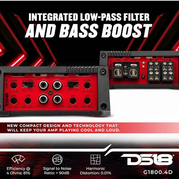 DS18 G1800.4D Car Audio Amplifier 4 Channel Class D Full Range 1800 Watts - Compact Design Easy Installation - Extremely Powerful Amp for Vehicle Sound Systems