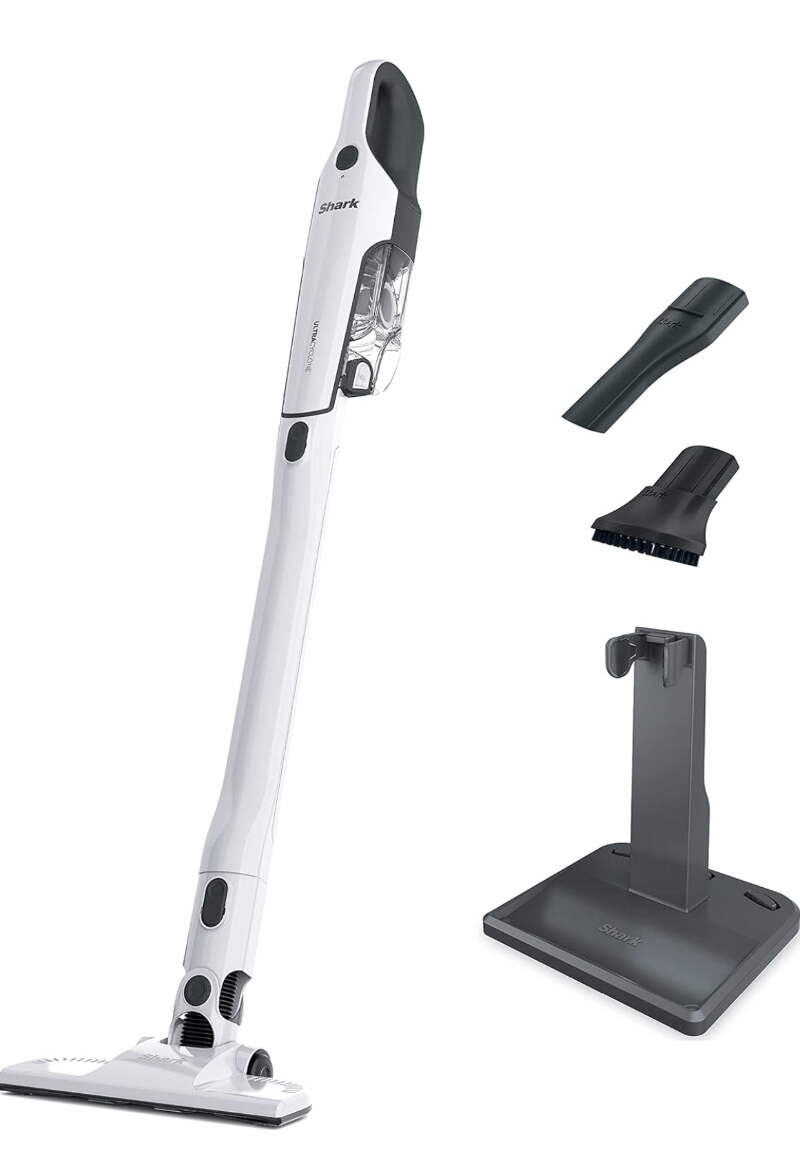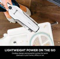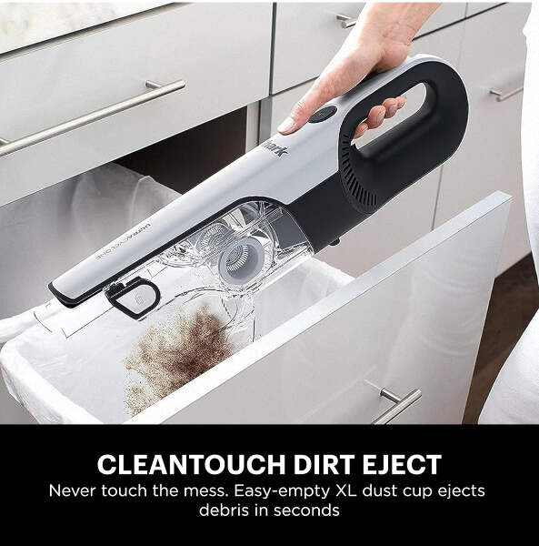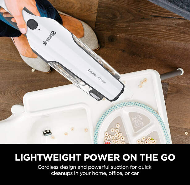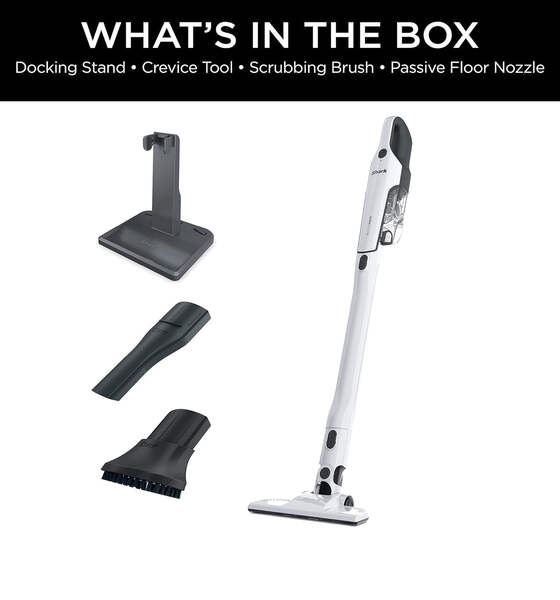 Brand Shark CH963AMZ 2-in-1 Pet Pro Cordless Handheld Vacuum Ultracyclone System, Lightweight and Portable for Car and Home, Rechargeable, Washable Filter, XL Dust Cup, Crevice Tool & Scrubbing Brush, White Special Feature Portable, Lightweight, Washable Filter Filter Type Fabric Filter Surface Recommendation Upholstery, Bare Floor Power Source Battery Powered Voltage 10.8 Volts POWERFUL CORDLESS SUCTION: Two cyclonic air streams for incredible suction and long-lasting filter and motor life. LIGHTWEIGHT AND PORTABLE: Detachable hand vacuum weighs just 2.8 lbs. 2 POWERFUL WAYS TO CLEAN: Handle above-floor messes with the detachable hand vacuum or use the versatile floor nozzle for quick bare floor cleanups. DOCKING STATION: Offers upright storage and accessibility. CLEANTOUCH DIRT EJECT: For easy, hands-free debris disposal. XL DUST CUP: To tackle big jobs. DEEP-CLEANING ACCESSORIES: Crevice tool for hard-to-reach places and scrubbing brush for stuck-on dirt. LITHIUM-ION POWER: Lithium-ion battery technology ensures reliable power and performance. EASY TO MAINTAIN: Maintenance is simple with an easily removable and washable filter. WHAT'S INCLUDED: Shark Ultracyclone 2-in-1 Handheld Vacuum, Passive Floor Nozzle, Crevice Tool, Scrubbing Brush & Docking Station.