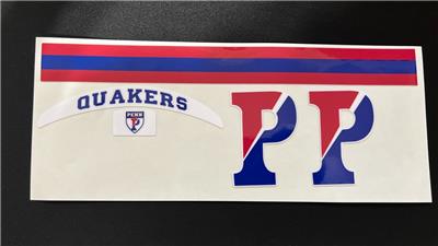 University of Pennsylvania (Penn) Quakers Mini Football Helmet Decal Set. You will receive a front bumper, rear bumper, side decals & center stripe. Decals are made for a Riddell Speed mini football helmet.