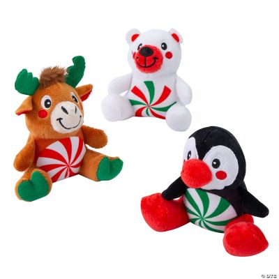 Fun Express Mini Christmas Peppermint Candy Stuffed Animals, 3 3/4" - 4 1/2" - 12 Piece