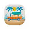 Outfit your surf party with the perfect tableware! These square dessert plates feature an image of an orange and brown station wagon with a bright green surfboard on the roof pulling up to a beach scene with sand, waves, sun and palm trees. These paper plates will perfectly complement your other surf party tableware and provide guests the ideal amount of space to grab some party treats to enjoy.