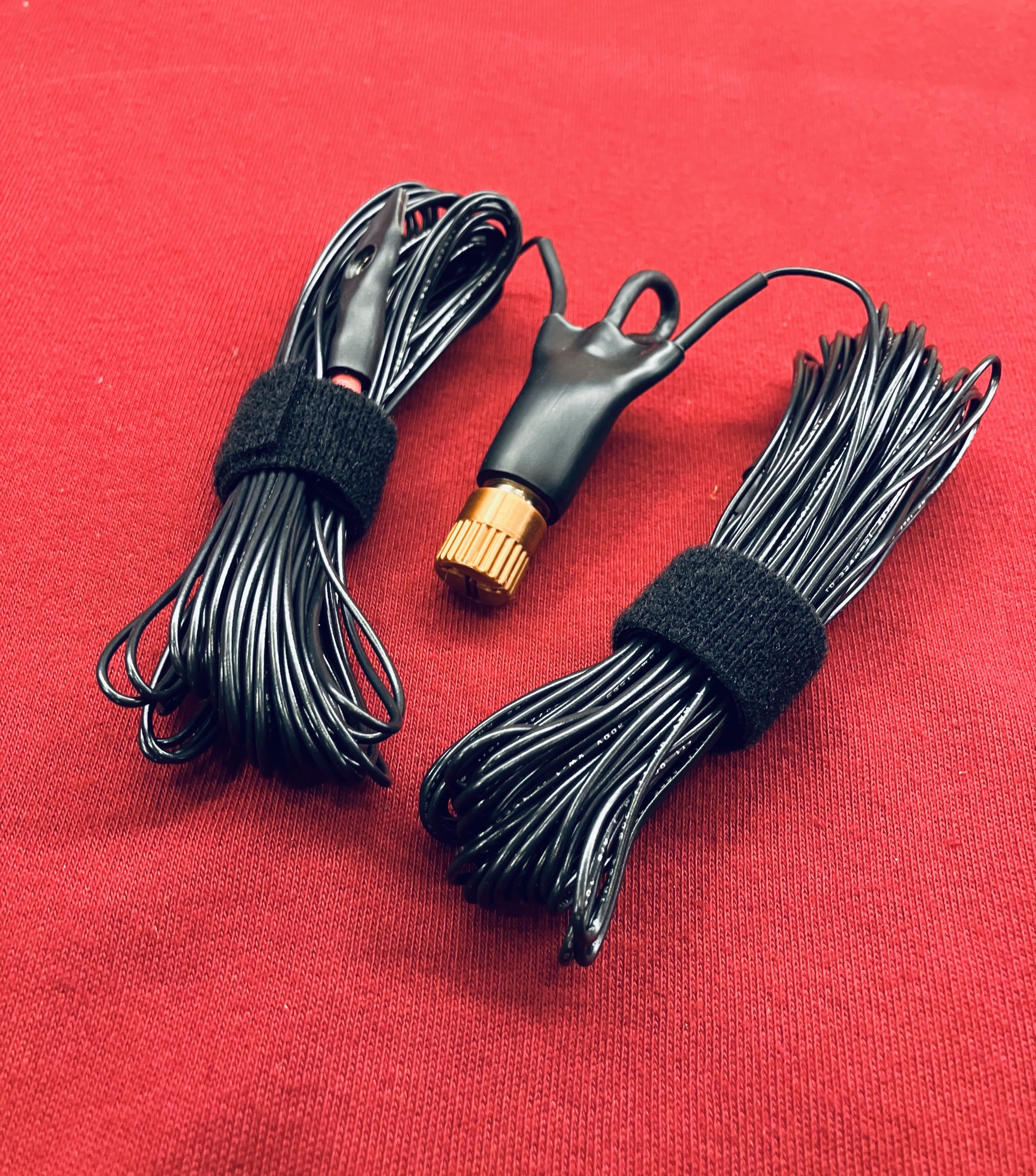 Radiating Elements: ~32 ft. (half wave at 20M) ~65 ft (half-wave at 40m) and ~128 ft. of 18 AWG UL 1007 stranded copper wire, balancing weight, flexibility, and durability.